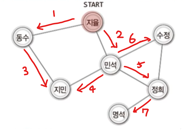 - 처음 정점으로 돌아가면 탐색 종료